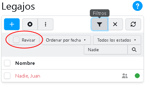 Por otra parte, si se quiere ver sólo los legajos de este tipo, se puede utilizar el filtro de lista: