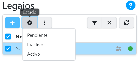Para cambiar el estado del legajo, seleccione un registro y presione una de las opciones: