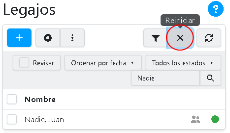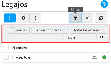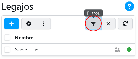Para filtrar la lista, y mostrar sólo una parte de los legajos, presione sobre el botón: