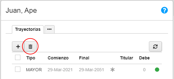 Para casos muy puntuales, por ejemplo, un error de carga, es posible habilitar la eliminación siempre y cuando el suscriptor no tenga miembros o aranceles pagos.