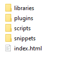 Las librerías están agrupadas por la extensión a las que pertenecen. Por lo tanto, si observamos dentro de la carpeta cms/scripts/, podemos encontrar algo similar a: