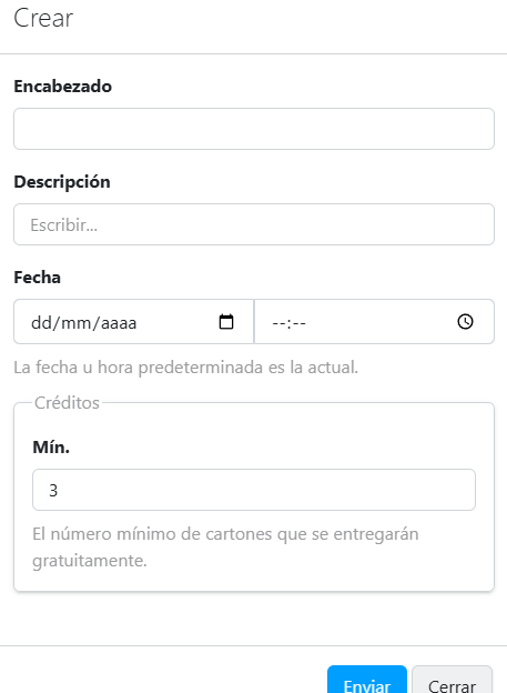 Teniendo al menos una sala de bingo, ya sea online o presencial, estamos listos para comenzar a crear partidas.