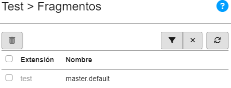 Si no se selecciona ninguna extensión, se mostrará la lista completa de fragmentos.