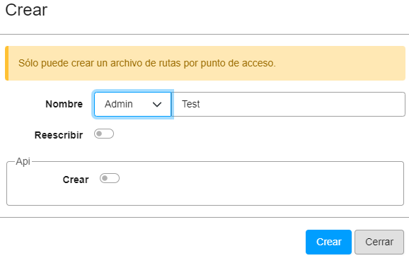 Esta opción crea un archivo de rutas. Para ello, presione el botón: